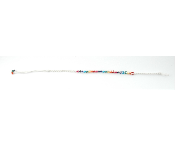 לקשירה יש להשחיל את החרוזים שבקצה הצמיד ללולאה שבקצה השני, להתאים בנוחות את הגודל ולקשור.