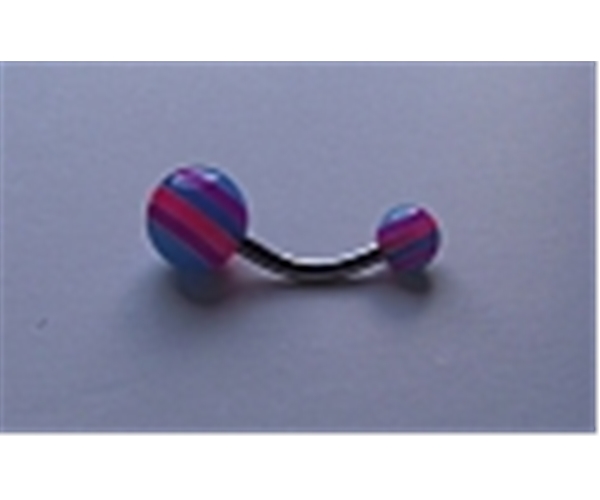 מוט מעוקל בצורת בננה, עם שני כדורים בצבעי דגל הביסקסואלים.