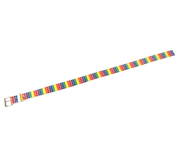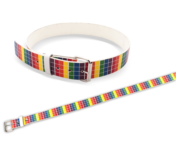 על גבי החגורה פסים אנכיים בצבעי הקשת.