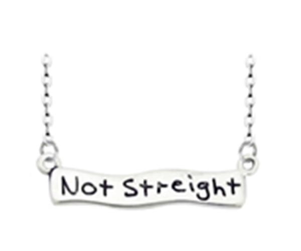 תליון יוקרתי ועליו הכיתוב Not straight.