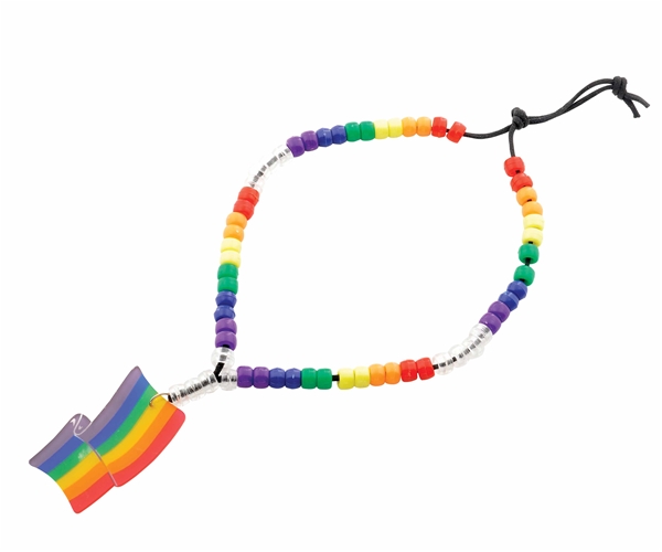 דגל גאווה מפלסטיק וחרוזים בשלל צבעי הקשת.
