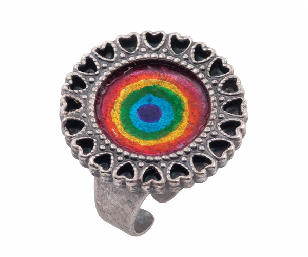 צבעי הקשת משתלבים על גבי הטבעת בנגיעות רכות ובאופן עדין המקנה לה מראה קלאסי וגאה.