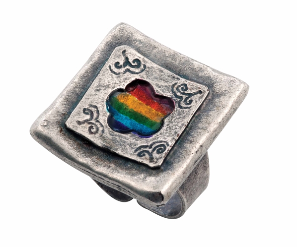 צבעי הקשת משתלבים על גבי הטבעת בנגיעות רכות ובאופן עדין המקנה לה מראה קלאסי וגאה.