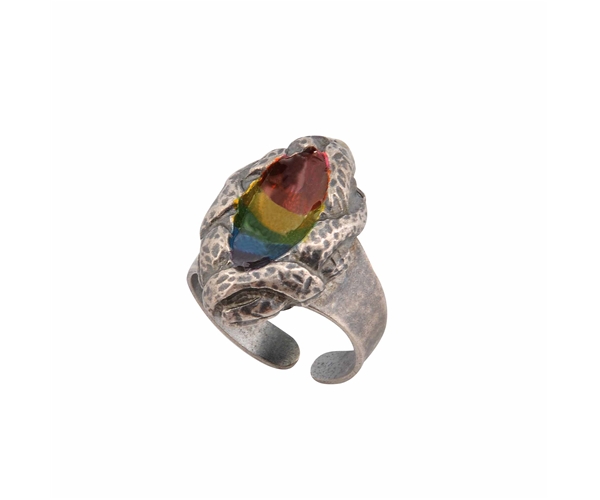צבעי הקשת משתלבים על גבי הטבעת בנגיעות רכות ובאופן עדין המקנה לה מראה קלאסי וגאה.