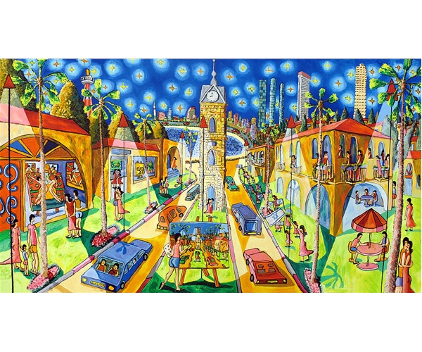 "רפי מצייר נופים אורבאניים של מקומות מרכזיים בעירו.
