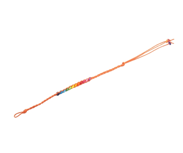 הצמיד עשוי בעבודת יד מחוטים דקיקים וחזקים בצבע כתום.