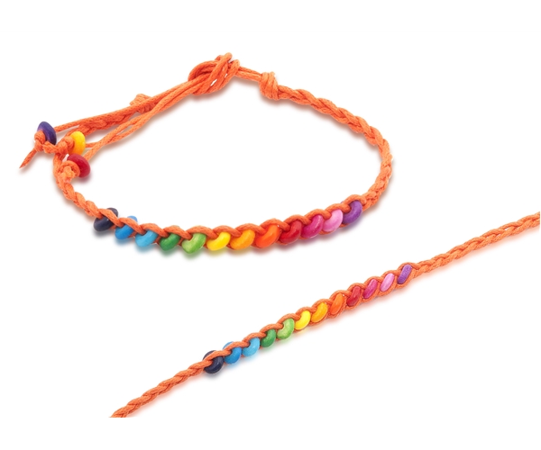 לקשירה יש להשחיל את החרוזים שבקצה הצמיד ללולאה שבקצה השני, להתאים בנוחות את הגודל ולקשור.