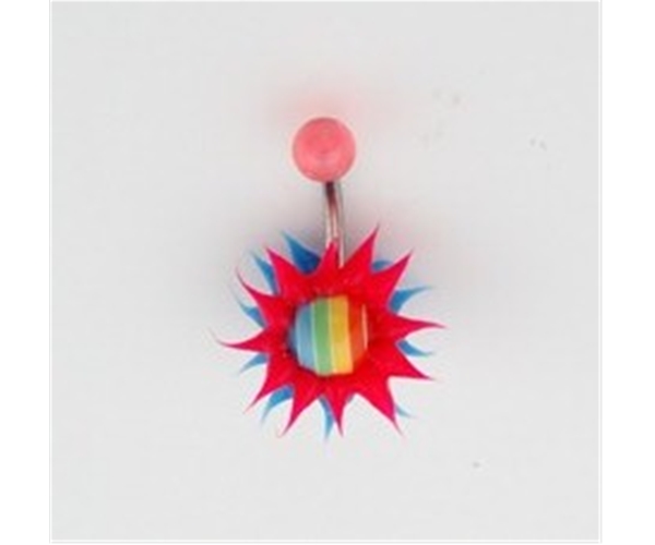 מוט מעוקל בצורת בננה, עם כדורי אקריליק בצבעי הקשת.