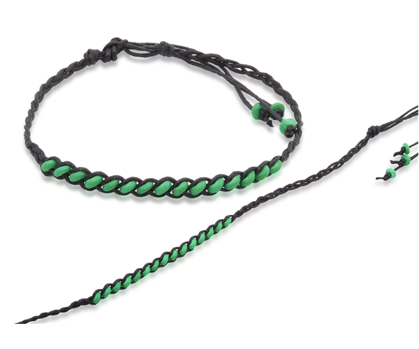 הצמיד עשוי בעבודת יד מחוטים דקיקים וחזקים בצבע שחור.
