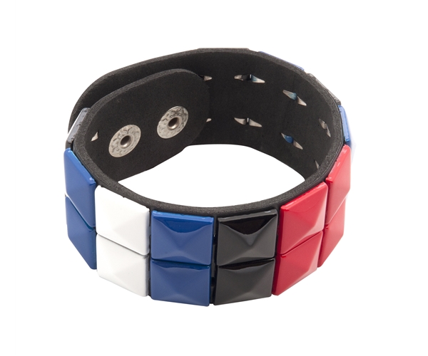 הצמיד שחור, עשוי מ PVC איכותי ועליו 2 שורות של ניטים 'פירמידה'.