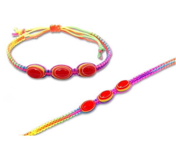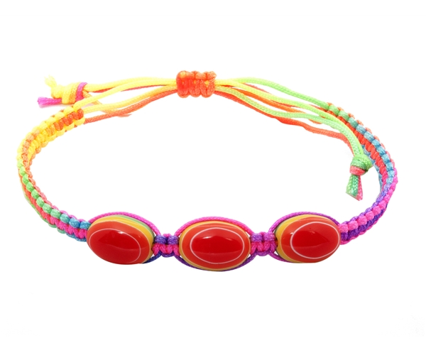 הצמיד עשוי בעבודת יד מחוטים צבעוניים.
