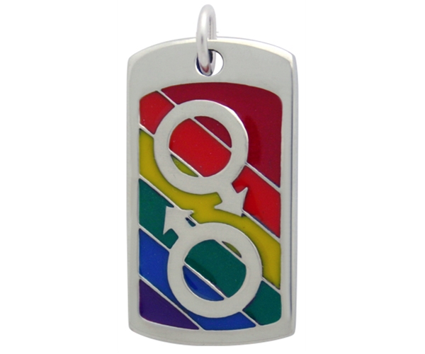 תליון דגל הקשת ועליו מוטבע סמל מארס כפול בצבע כסוף.