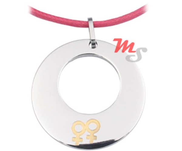 על גבי התליון העגול ניצבים שני סמלי ונוס זהובים בשילוב הרמוני.