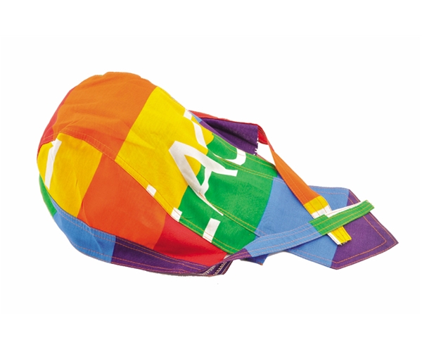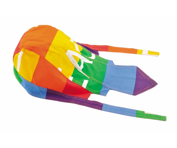 כובע בנדנה עם שישה פסים צבעוניים שאומרים הכול.
