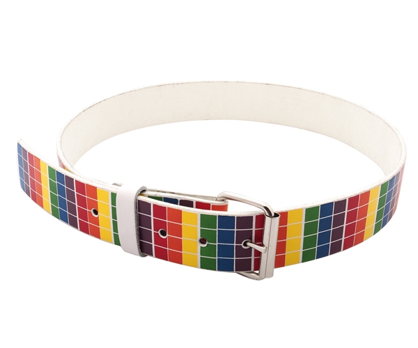 על גבי החגורה פסים אנכיים בצבעי הקשת.
