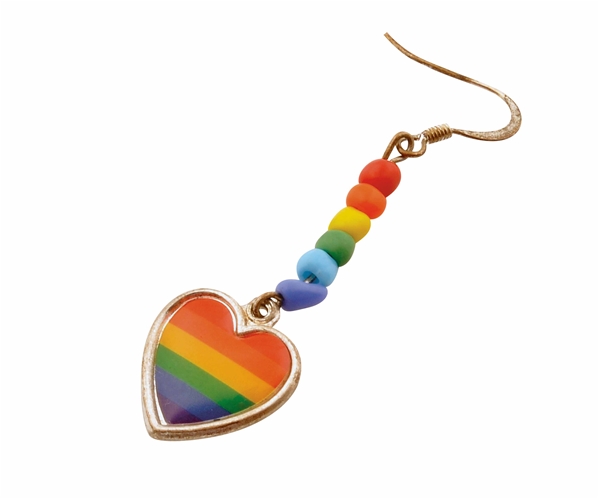 עגיל וו עם חרוזים בצבעי הקשת.