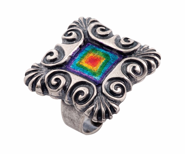 צבעי הקשת משתלבים על גבי הטבעת בנגיעות רכות ובאופן עדין המקנה לה מראה קלאסי וגאה.