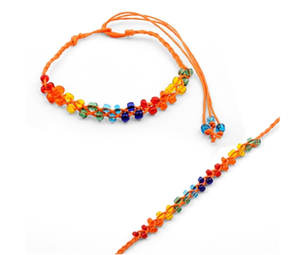 לקשירה יש להשחיל את החרוזים שבקצה הצמיד ללולאה שבקצה השני, להתאים בנוחות את הגודל ולקשור.