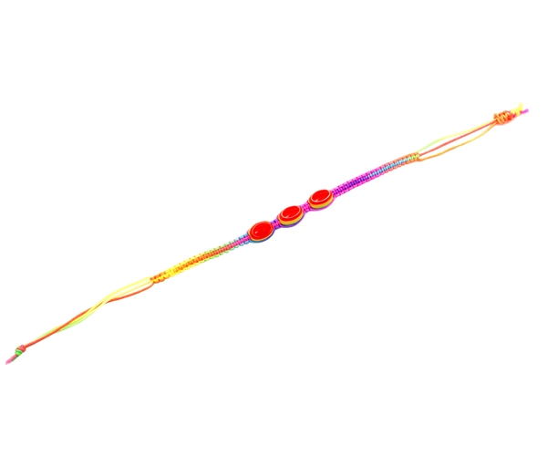 בין החוטים שזורים 3 חרוזים בצבעי הקשת.