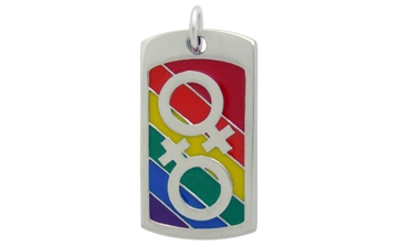 תליון דגל הקשת ועליו מוטבע סמל ונוס כפול בצבע כסוף.