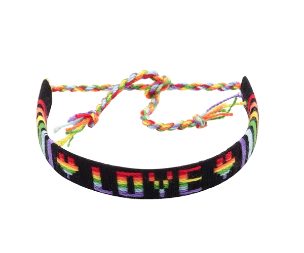 צבעי הקשת מופיעים בפסים בשני הצדדים, ובמרכז המילה LOVE.